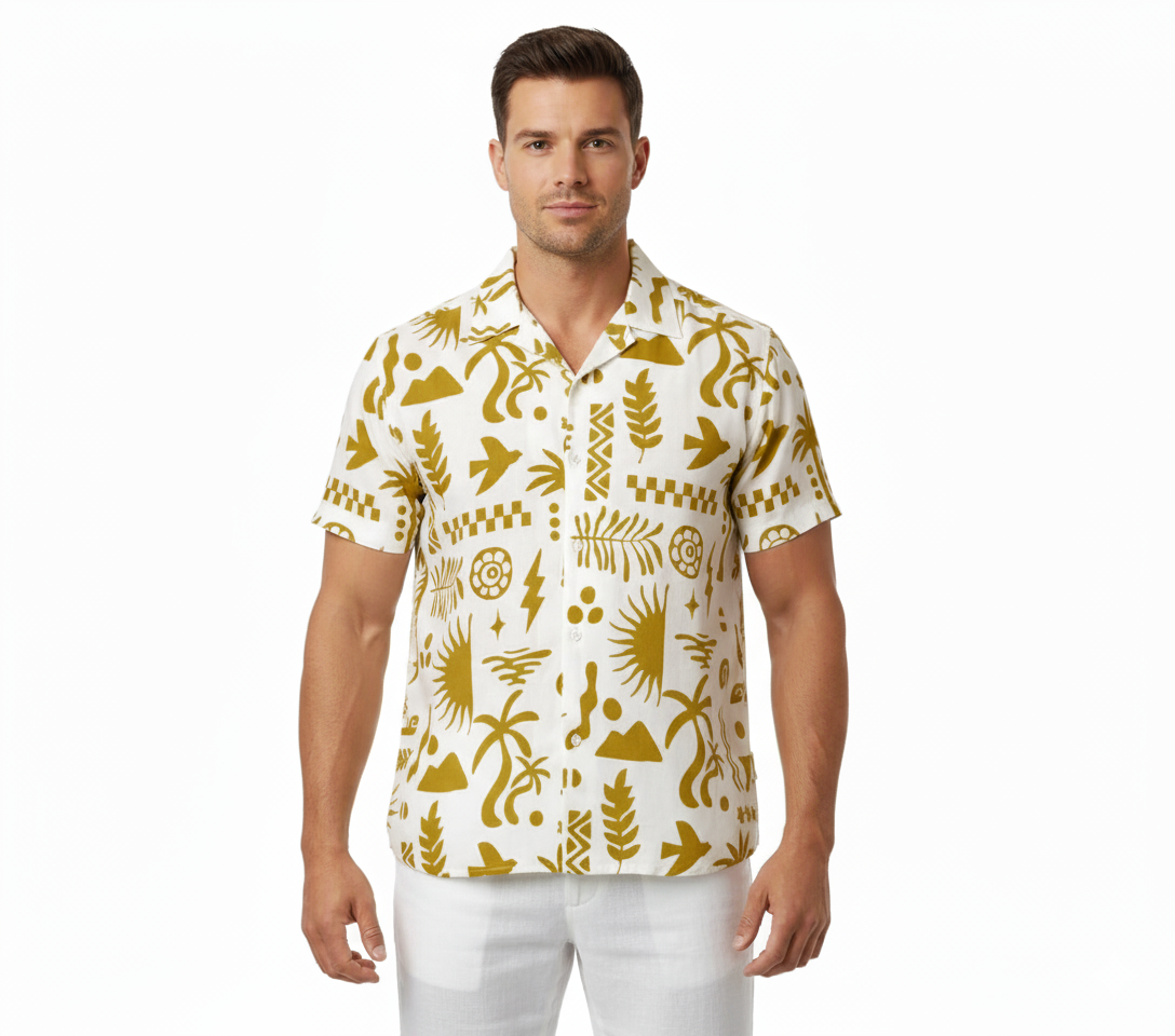 Shirt Adult Abstrak Rayon Abstrak Tropical Gold(XXXL)