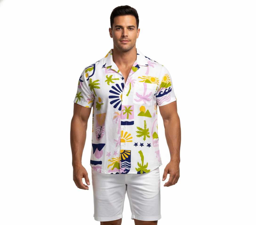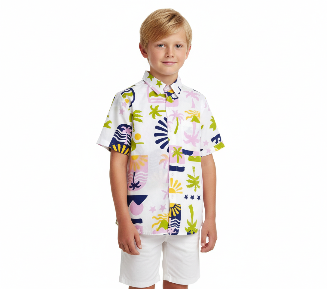 Shirt Boy Pantai Rayon Pantai Pink(S)